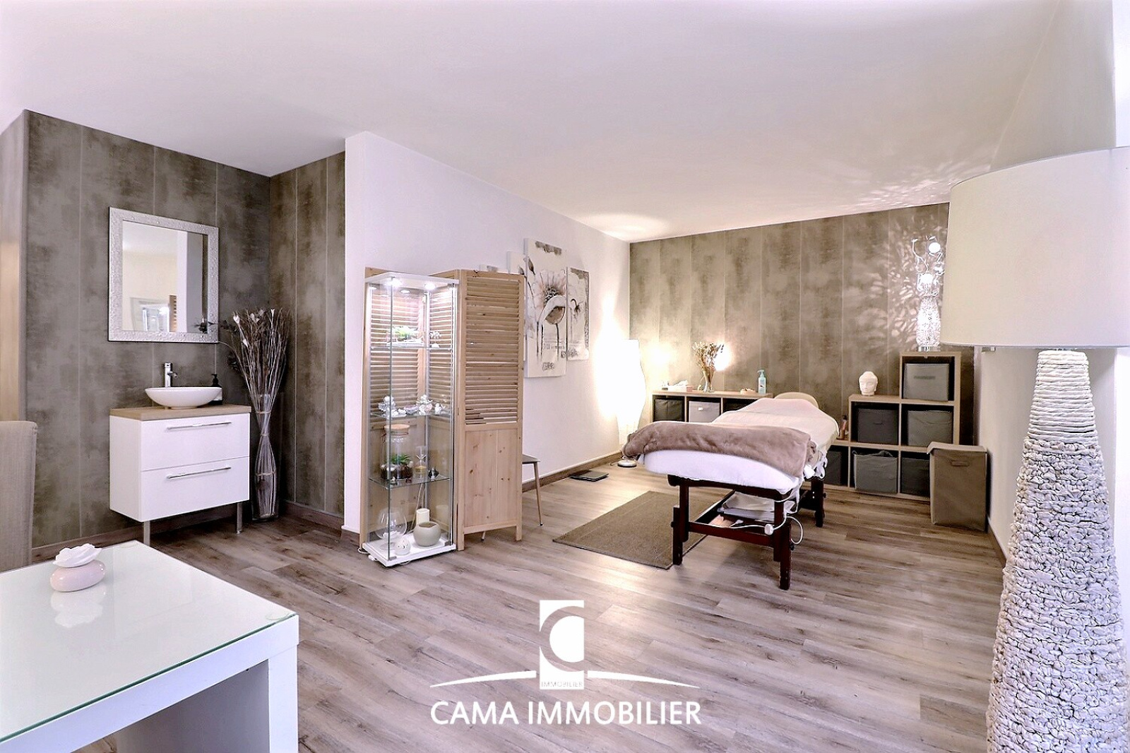 L'agencement permet un retour facile à un usage d'habitation : les arrivées d'eau ont été conservées et discrètement coffrées, offrant la possibilité de créer facilement une salle d'eau avec douche à l'italienne.